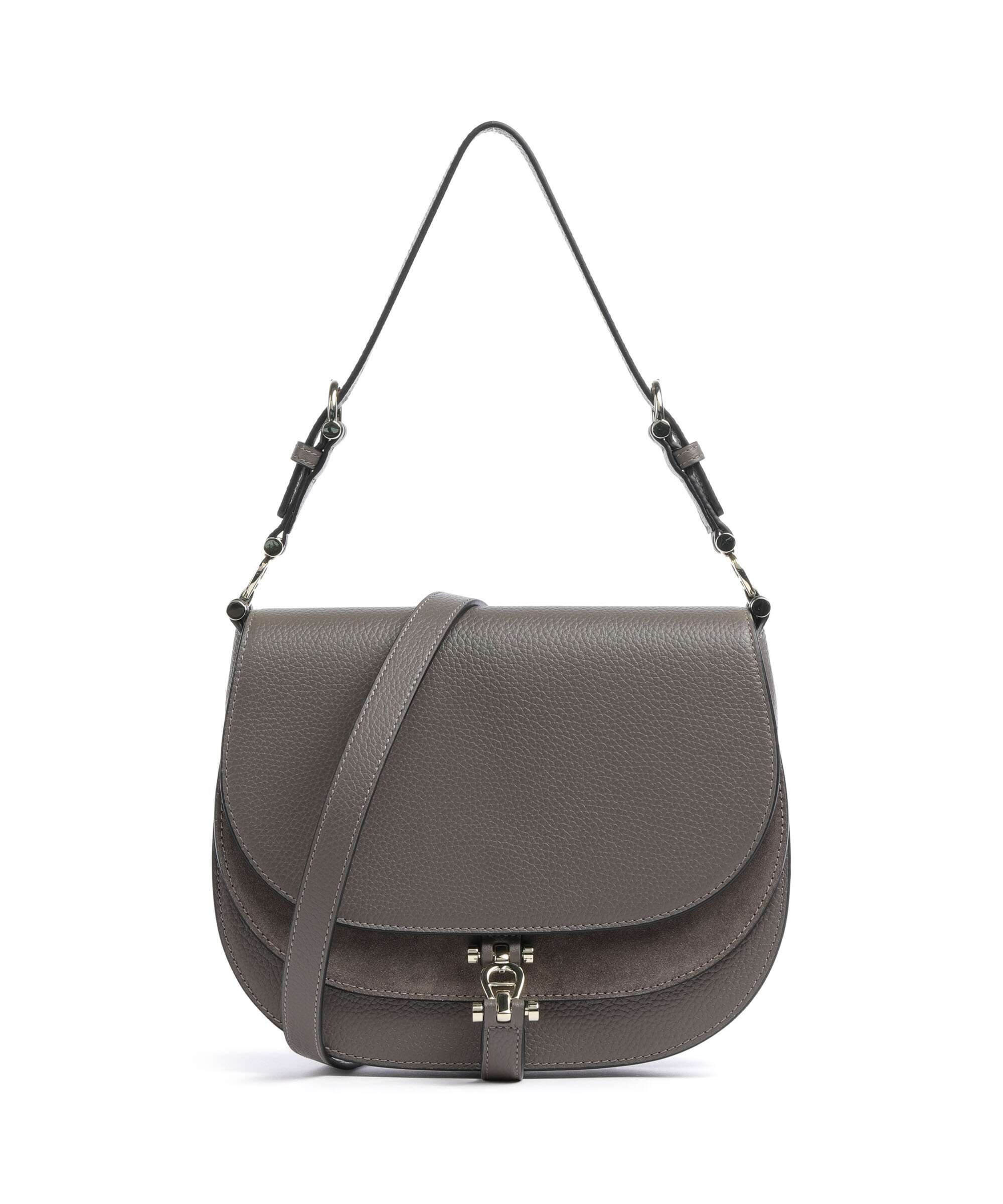 Delia S Shoulder bag grained leather coal brown